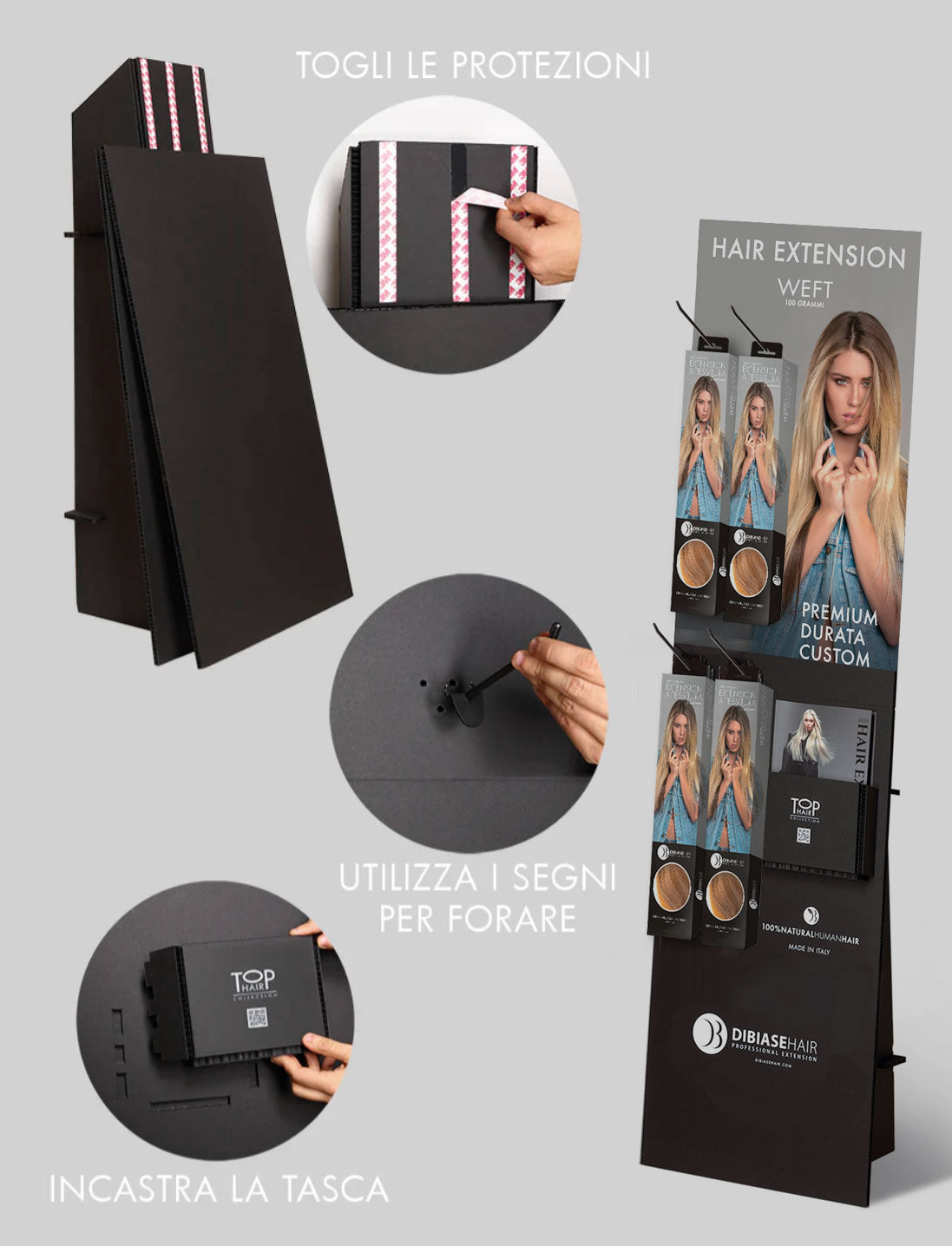 - Dai nuova vita al tuo salone con l'espositore pieghevole WEFT incluso di 4 confezioni di WEFT da 50/55 cm, dal peso di 100 grammi e larghezza 160-170 cm.